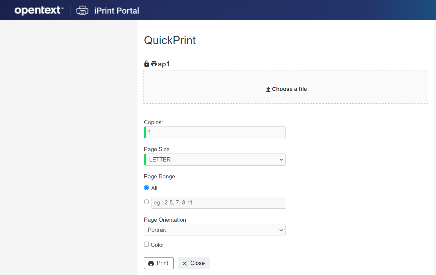 Launch the iPrint Portal (https://<iprintforoes_IP or hostname>/print).