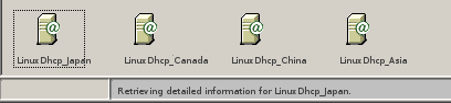 The status bar displays in the bottom pane of the Management Console. When an object is selected, the status of that object is displayed in the status bar. Figure 1-19 displays the status bar for the Server LinuxDHCP_Japan server.