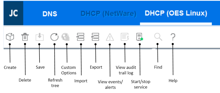 Figure 1-18 DHCP (OES Linux) Toolbar