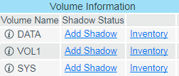 For example, the volume SHARE is the NSS volume that is planned to be used for the secondary volume. The volume is in the Volume Information list with a Shadow Status value of Add Shadow.