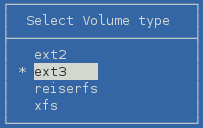 Select one of the following the Linux POSIX file systems, then press Enter: