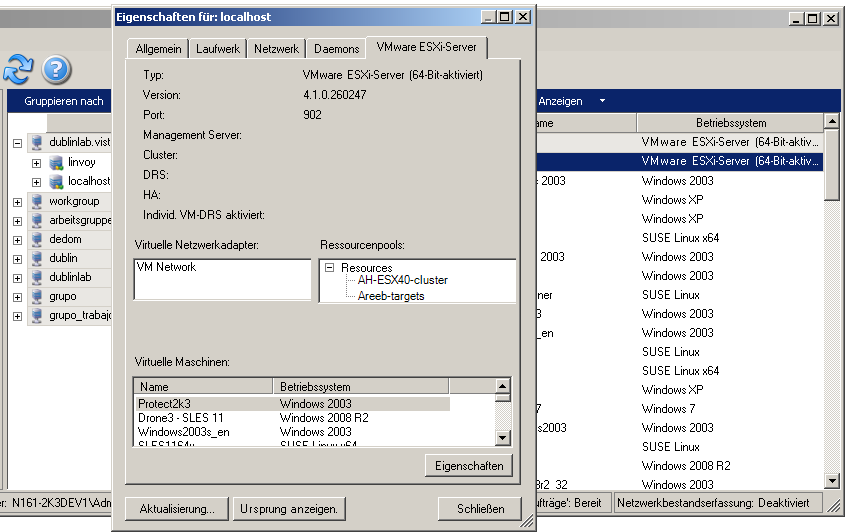 Die folgende Abbildung zeigt die Eigenschaften eines ermittelten VMware ESX-Servers.