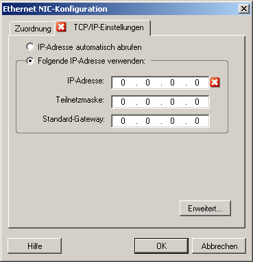 Verbinden mit: Wenn mehrere Netzwerkadapter vorhanden sind, wählen Sie den Adapter aus, der sowohl mit dem PlateSpin-Server als auch mit dem Ziel kommunizieren kann. Duplex-Einstellung: Verwenden Sie die Dropdown-Liste, um die Duplexeinstellung für Netzwerkkarten auszuwählen. Diese muss mit der Duplexeinstellung für den Switch übereinstimmen, mit dem die Netzwerkschnittstelle verbunden ist. Wenn der Ursprung mit Switch-Ports verbunden ist, die auf 100-Mbit-Vollduplex eingestellt sind und nicht auf automatische Aushandlung geändert werden können, wählen Sie NIC in Vollduplex erzwingen. Registerkarte TCP/IP-Einstellungen: Klicken Sie auf diese Registerkarte, um auf die TCP/IP- und erweiterte Netzwerkeinstellungen zuzugreifen. Weitere Informationen hierzu finden Sie unter TCP/IP- und erweiterte Netzwerkeinstellungen. |