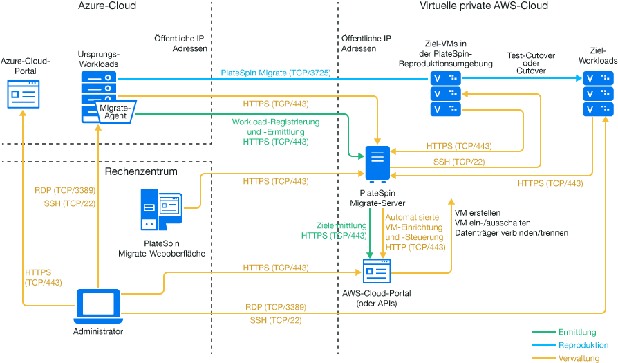 Abbildung 12-2 Migrate-Server in Azure für die automatisierte Migration von Azure zu AWS ohne VPNs