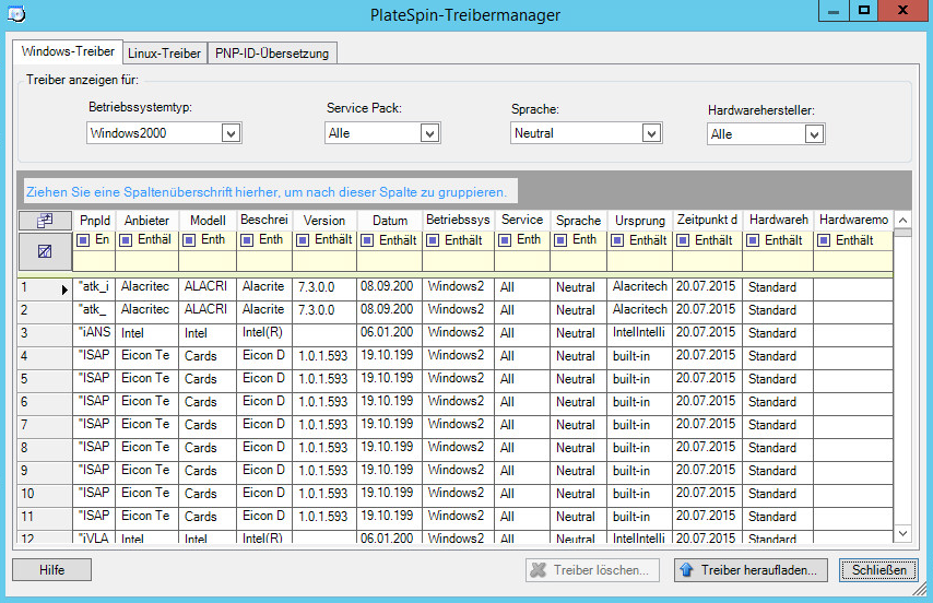 Verwenden Sie den PlateSpin Treibermanager zum Hochladen von Gerätetreibern in die Treiberdatenbank.
