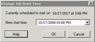 Haga clic con el botón secundario en el trabajo y seleccione Change Start Time (Cambiar hora de inicio) para abrir el recuadro de diálogo Change Job Start Time (Cambiar hora de inicio del trabajo).