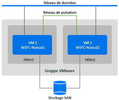 Figure C-1 Grappe WSFC avec noeuds VM situés sur des hôtes VMware différents (« Cluster across Boxes »)
