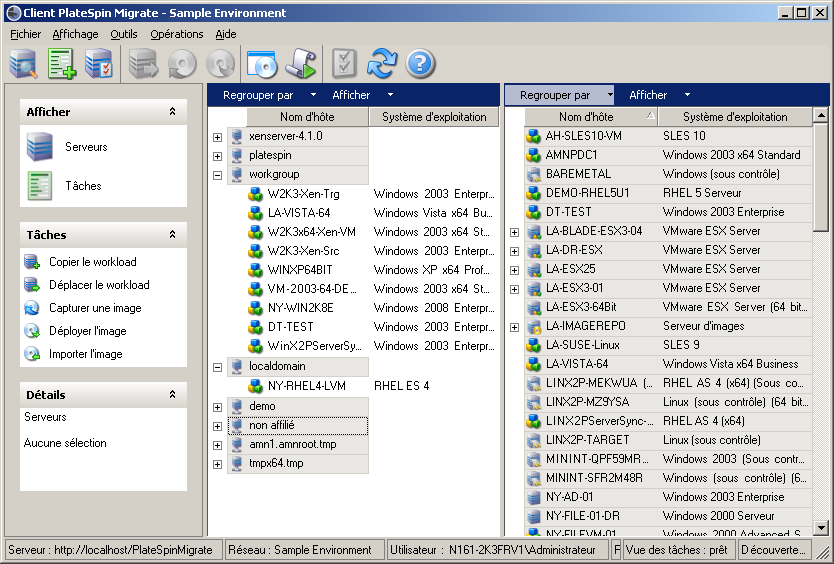 Figure 3-1 Vue Serveurs du client PlateSpin Migrate
