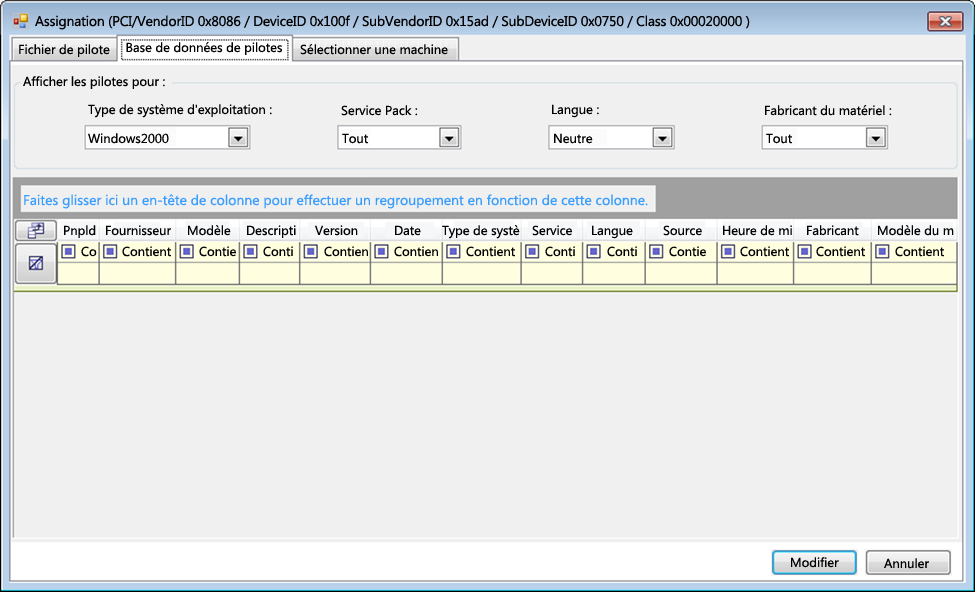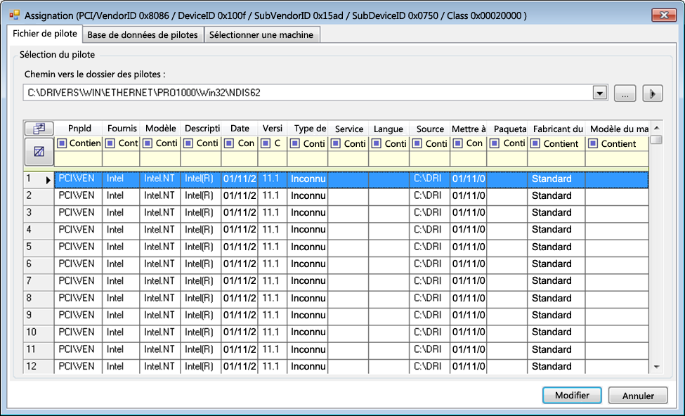 Sous l'onglet Base de données de pilotes, recherchez et sélectionnez la base de données de pilotes existante, sélectionnez l'ID PnP correct, puis cliquez sur Modifier.