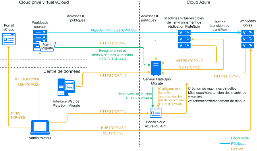 PlateSpin Migrate prend en charge la migration de workloads à partir de VMware vCloud Director vers Microsoft Azure.