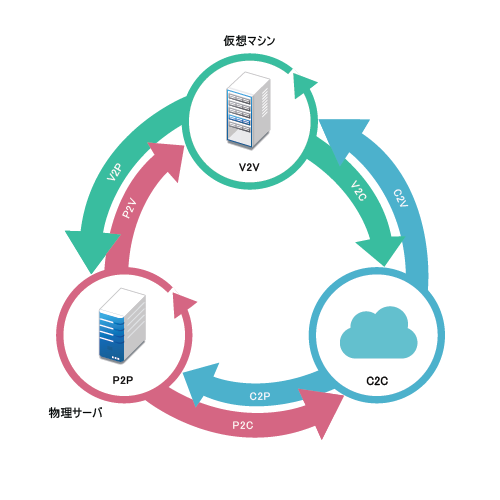 PlateSpin Migrateは、複数のワークロードタイプと仮想化プラットフォームをサポートしています。イメージングは、Microsoft Windowsオペレーティングシステムを使用したワークロード向けにサポートされています。サポートされているワークロードとインフラストラクチャの詳細なリストについては、サポートされる構成を参照してください。