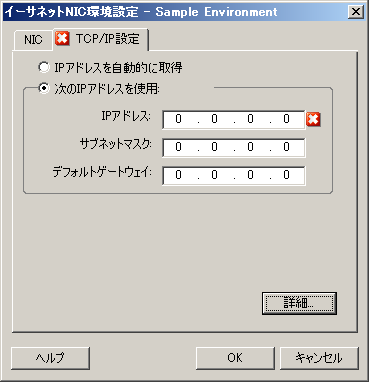 静的 - 手動: 静的IPアドレスを指定します。