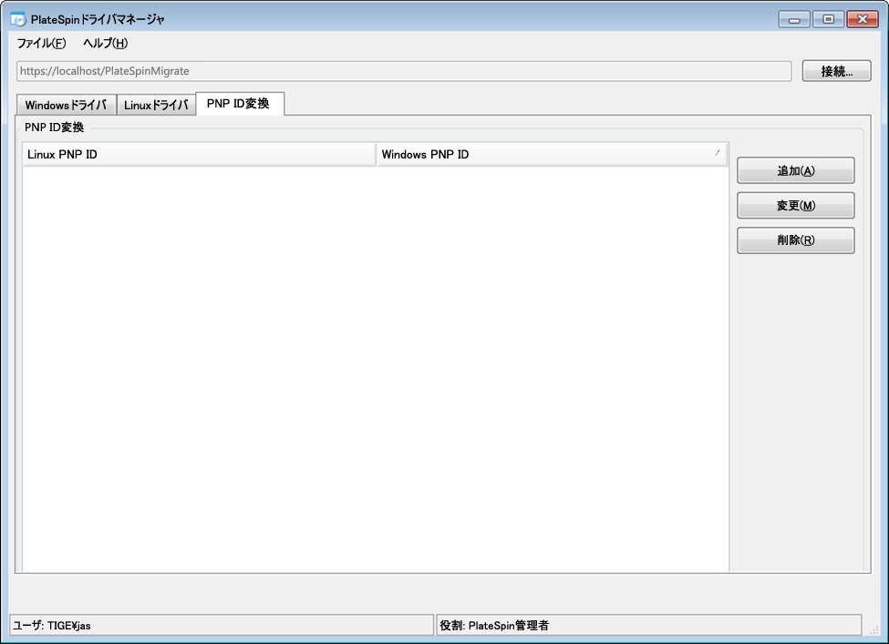 PlateSpin Driver Managerツールを起動し、PlateSpin Serverに接続します。