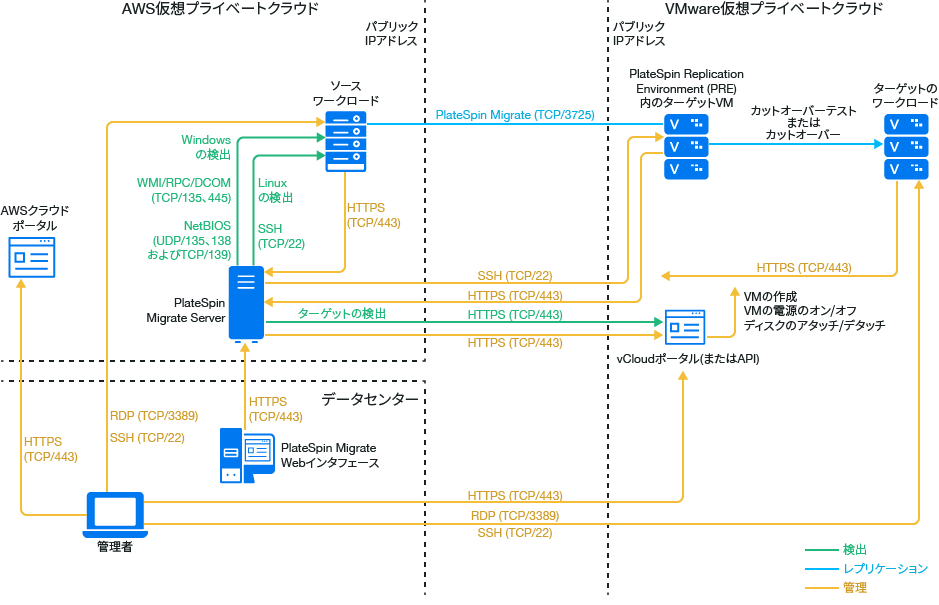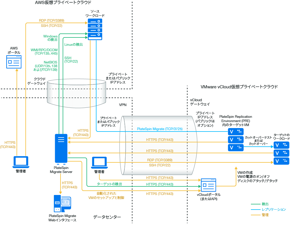 VPNが使用できるのでMigrate Agentは必要ありませんが、これも機能します。登録のためのネットワークポートとファイアウォールの要件については、セクション 2.6.2, ワークロード登録の要件を参照してください。