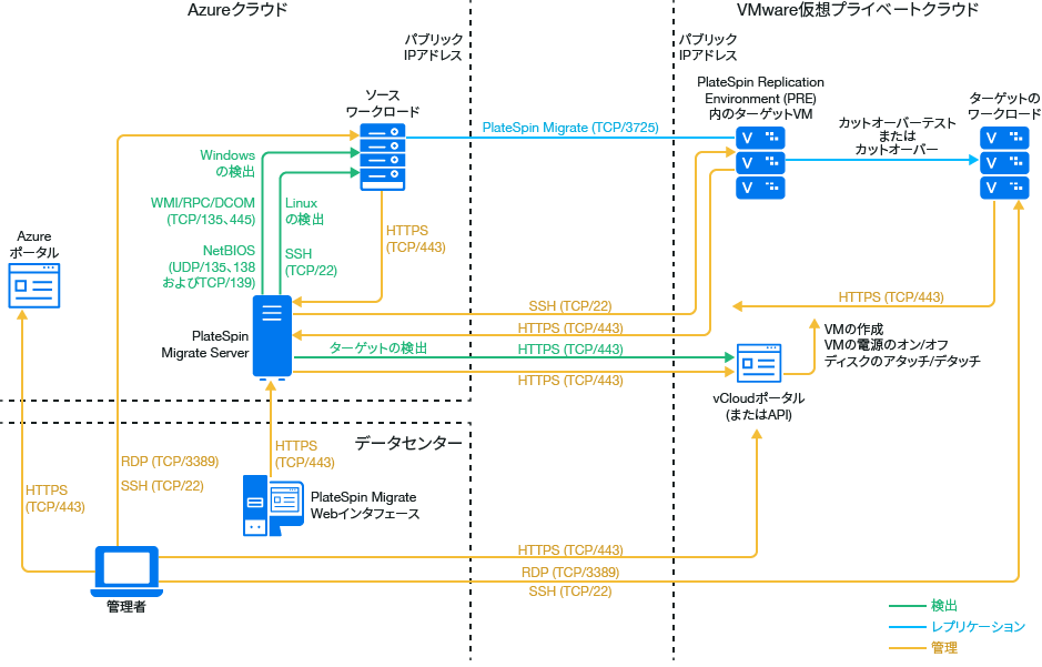 PlateSpin Migrate用のAzureソースワークロードを準備します。 |