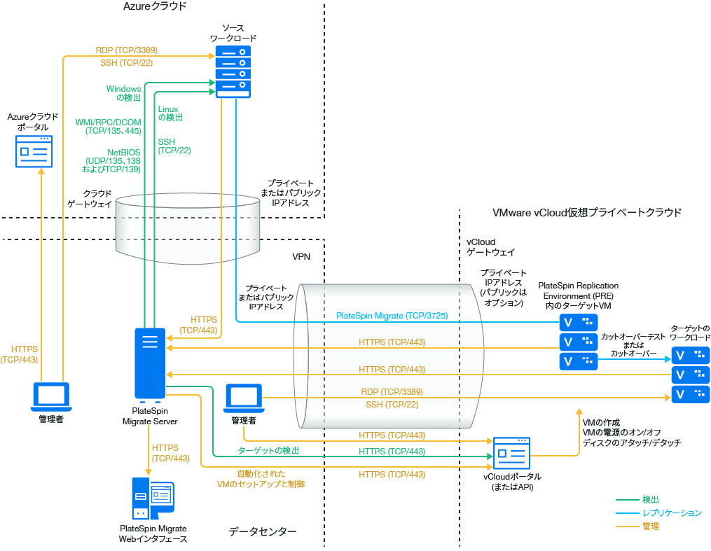 PlateSpin Migrateは、Microsoft AzureからVMware vCloud Directorへのワークロードのマイグレーションをサポートしています。
