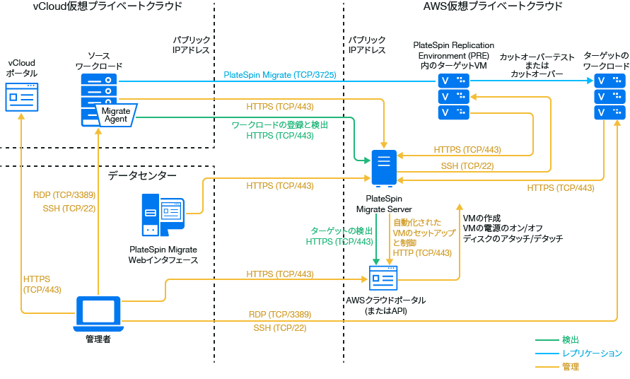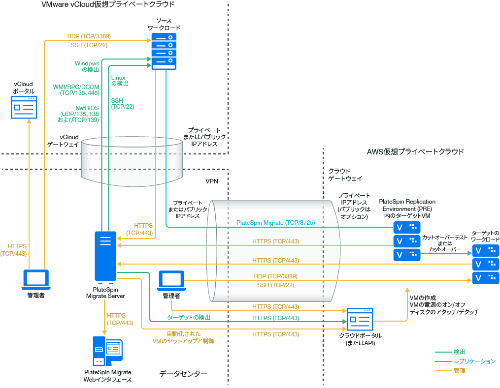 VPNが使用できるのでMigrate Agentは必要ありませんが、これも機能します。登録のためのネットワークポートとファイアウォールの要件については、セクション 2.6.2, ワークロード登録の要件を参照してください。
