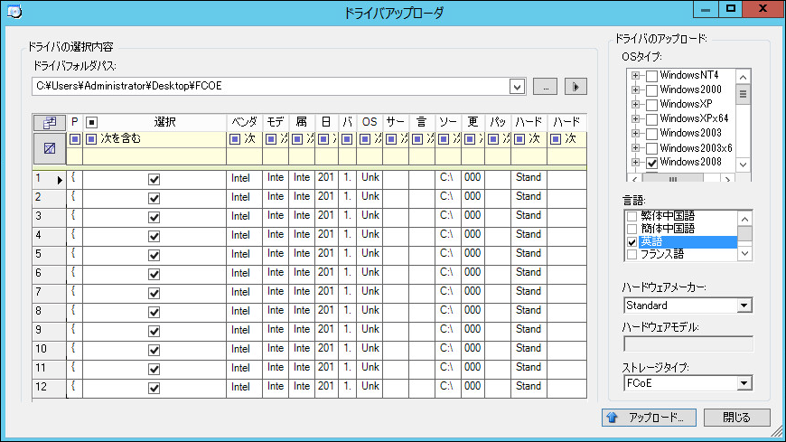 必要なドライバファイルが含まれているフォルダをブラウズして、該当するOSタイプ、言語、およびハードウェアメーカーのオプションを選択します。