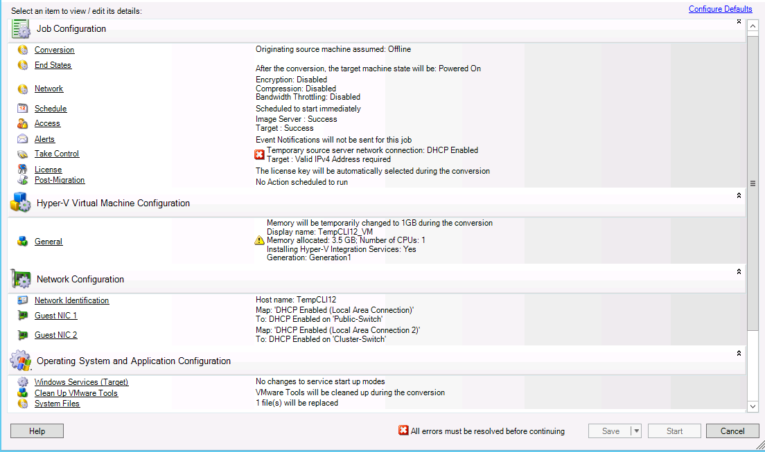 Migration jobs are auto-configured to create the target machine with the same settings as the source server. Depending on the objectives of the migration, you can: