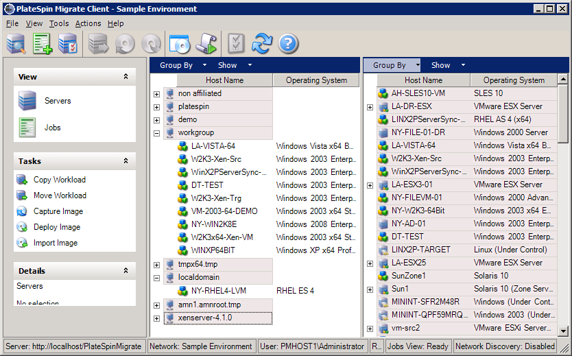 Figura 3-1 Tela Servers do Cliente do PlateSpin Migrate