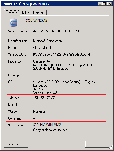 A Figura 3-2 apresenta um exemplo de nomes de host X2P para cargas de trabalho de destino com e sem a presença de um sistema operacional. As cargas de trabalho X2P-HV-LX-VM3 e X2P-HV-WIN-VM1 não têm um sistema operacional subjacente. As informações do LRD são exibidas como o sistema operacional.