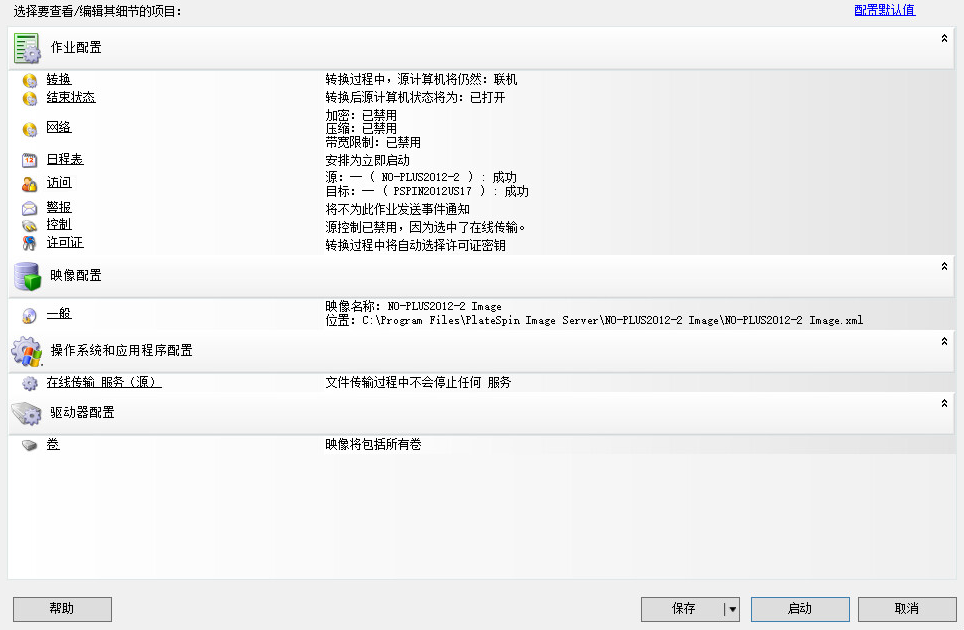 单击每个类别中的链接,为迁移作业指定所需的设置。