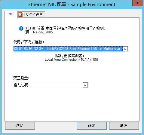 连接方式:如果有多个网络适配器,请选择既可与 PlateSpin 服务器又可与目标通讯的适配器。 双工设置:请使用该下拉列表选择网卡双工,该设置必须与网络接口所连接的交换器的双工设置相匹配。如果源连接的交换器端口设置为 100 Mbit 全双工,并且不能更改为自动协商,请选择强制将 NIC 设置为全双工。 TCP/IP 设置选项卡:单击此选项卡可访问 TCP/IP 及高级网络设置。请参见TCP/IP 及高级网络设置。 |