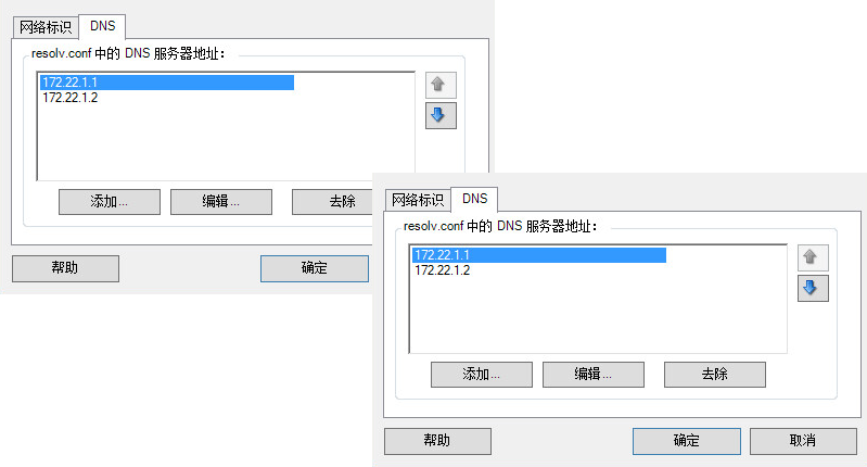 网络标识选项卡:为目标服务器指定所需的主机名。 DNS 选项卡:使用添加、编辑和去除按钮可管理新虚拟机的 DNS 服务器项目。 |