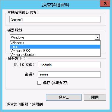 若要一次探查多個機器,請指定多個主機名稱或 IP 位址,並用分號分隔它們。如果機器位於 NAT 裝置之後,請指定其公用 (外部) IP 位址。