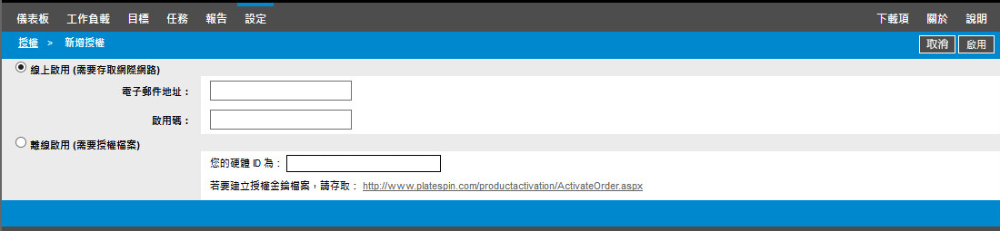 線上啟用要求您的 PlateSpin Migrate Web 介面能夠存取網際網路。