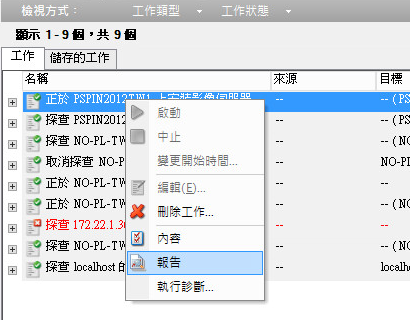 在該工作上按一下滑鼠右鍵,然後選取報告。