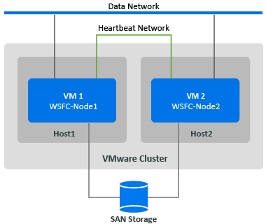 NOTE:The information in this section is intended for system administrators who are familiar with VMware virtualization technology and Microsoft Windows Server Failover Cluster technology. Refer to the Microsoft documentation and VMware documentation for the most recent information about the vendors’ support and configuration requirements for hosting WSFC nodes as VMs on different VMware virtualization hosts.