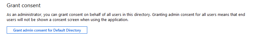 [Azure Global Administrator rights for the Default Directory are required for this step.] Grant admin consent for the Default Directory for the requested permissions.
