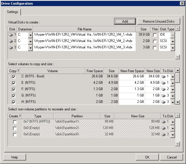 In the Drive Configuration section of the Migration Job window, configure the following settings. For options specific Hyper-V, see Section 30.2.2, Drive Configuration: Hyper-V.