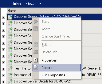 Right-click the job and select Report.