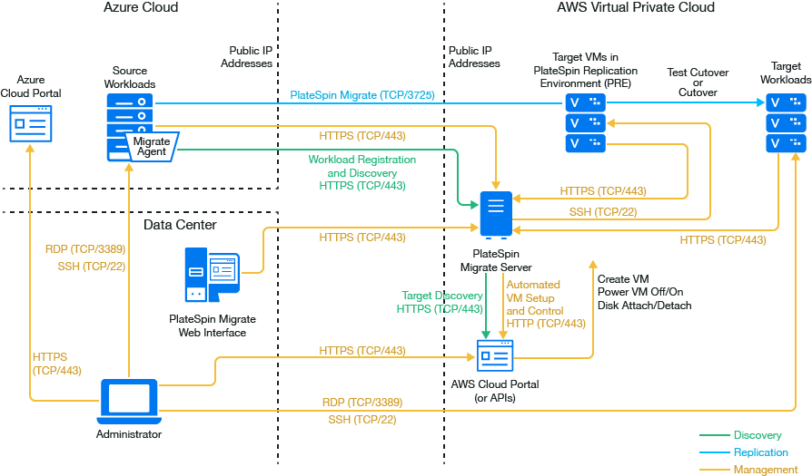 PlateSpin Migrate supports migration of workloads from Microsoft Azure Cloud to Amazon Web Services EC2 Cloud.