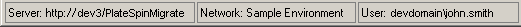 Double-click one of the following three areas in PlateSpin Migrate Client status bar at the bottom: Server, Network, or User.