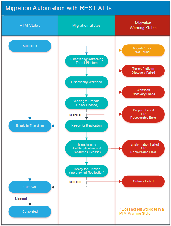 Figure 3-1 Migration States that Trigger Warnings in PTM