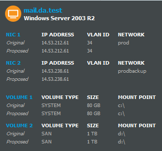 (Optional) Pause over a workload name to view a summary of its source workload and target workload configurations for NICs and volumes.