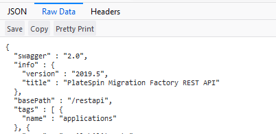This is the same type of information displayed when you visit the REST API location on your PlateSpin Transformation Manager server at http://<your-ptmserver-ip-address-or-fqdn>:8082/restapi.