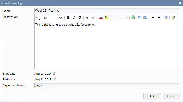 The first step is to create a testing cycle. A testing cycle is a defined period in time consisting of a start date, an end