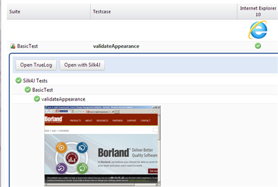 page, click on the status of a test to view detailed information, including error logs and TrueLog files.