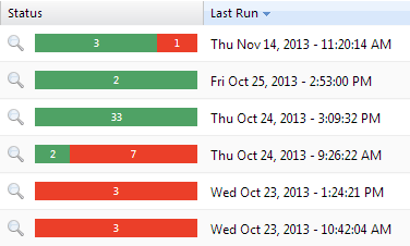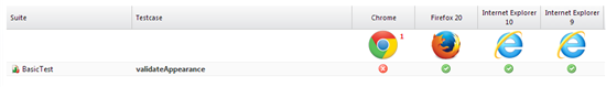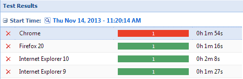 page, click on the status of a specific test result to see the result of the test run for every configuration.